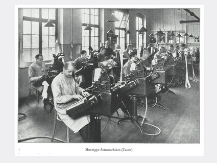 Monotype-Taster-Saal bei Breitkopf & Härtel Leipzig, aus Techn. Bericht 1927, S. 24, ID 2280
