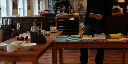 Der Museumsshop bietet Glückwunschkarten, Karten-Mappen, Geschenkpapiere, Bücher, Schreibwaren, Plakate und vieles mehr an. Zahlreiche Produkte sind exklusiv im Museum auf historischen Maschinen hergestellt worden.