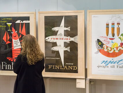 „Auf nach Finnland“ nimmt den Besucher mit auf eine Reise in die Plakatkunst und 150 Jahre finnisches Grafik-Design. Unberührte Natur, urbane Städte wie Helsinki oder eine Winterlandschaft werben auf 80 Plakaten von 1853 bis heute in leuchtenden Farben zur Reise in ein noch unbekanntes Land.