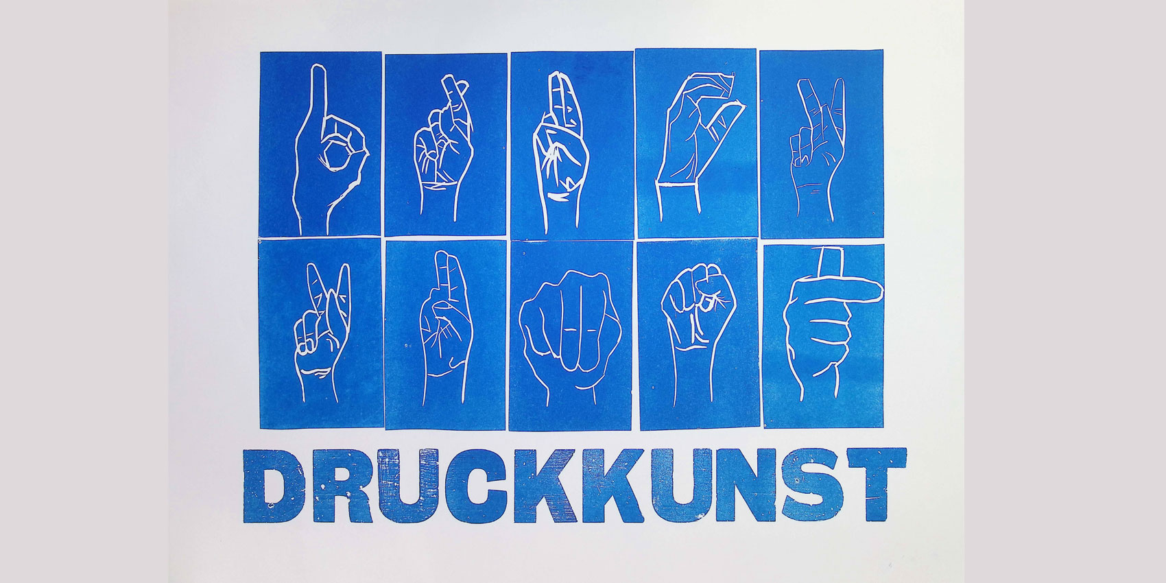 Das Alphabet hat viele Formen. In diesem Kurs drucken wir mit Holzbuchstaben und ganz neu auch mit den Handformen des Fingeralphabets im Linolschnitt. Nach dem Kurs wisst ihr, wie ihr euren Namen mit den Fingern buchstabieren könnt und nehmt zusätzlich bunte Buchstaben-Drucke mit nach Hause.