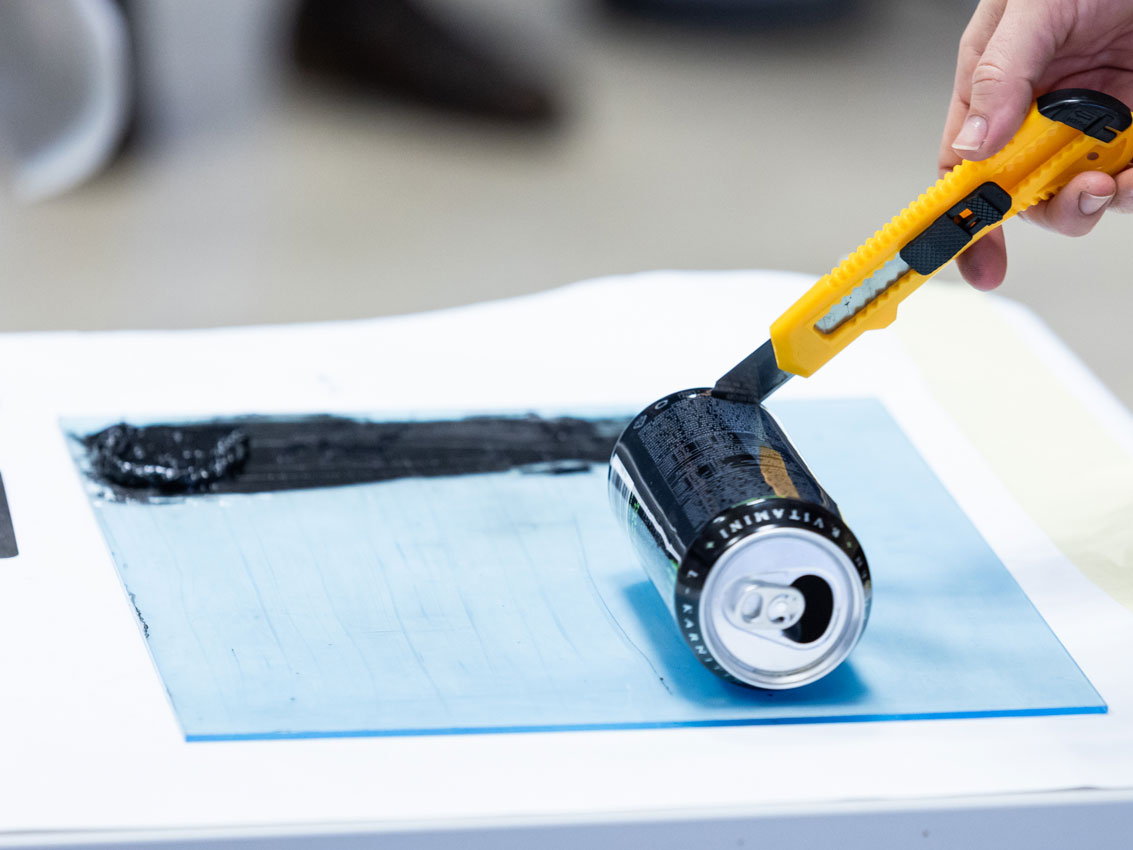 Die Technik nutzt natürlich vorkommende ölähnliche Rückstände auf Wasseroberflächen als Zeichenmaterial und bedient sich aufbereiteter Getränkedosen als Druckmatrize. Teilnehmende sind eingeladen, Drucken neu zu denken und dabei über Nachhaltigkeit, Material und unser Verhältnis zur natürlichen Umwelt praktisch zu reflektieren.