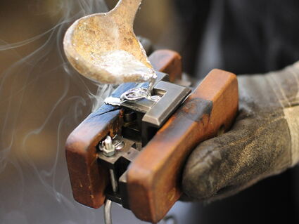 We cast new metal type for hand composition from the old matrices on machines from companies such as Foucher, Paris, as well as Küstermann and Berthold, Berlin.