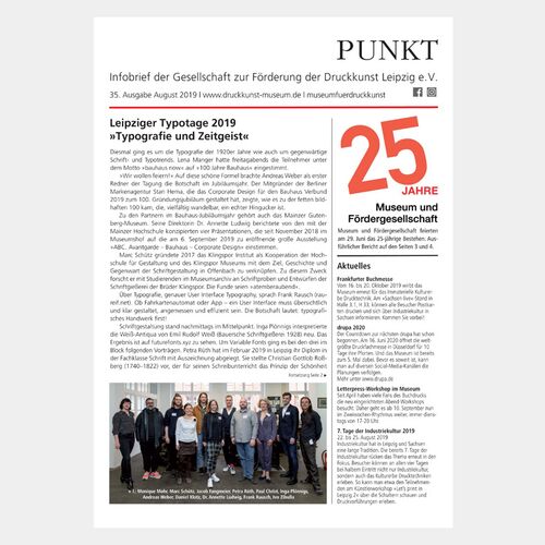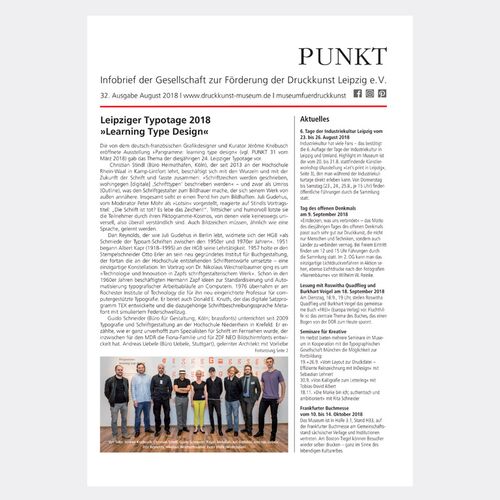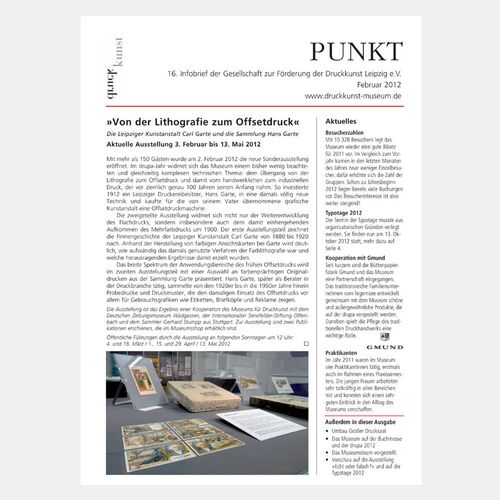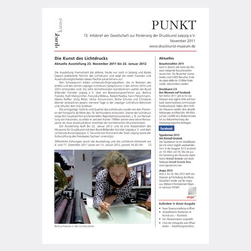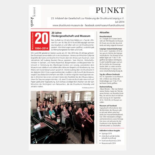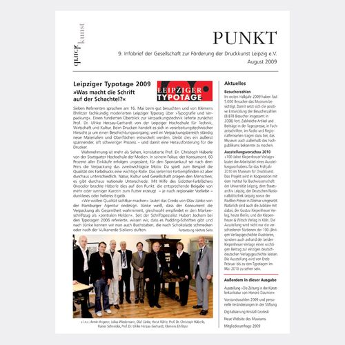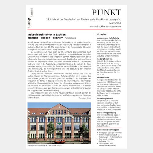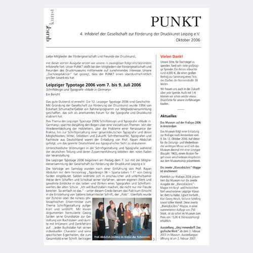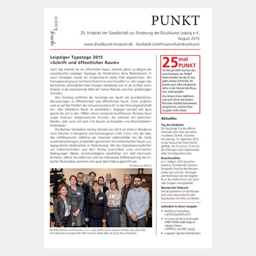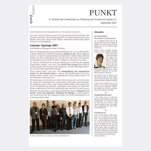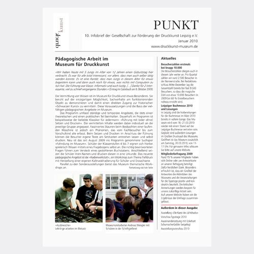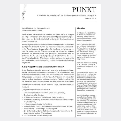 Seit Mitte 2005 schicken wir an Mitglieder der Fördergesellschaft und Freunde des Museums unseren Infobrief PUNKT. Der Infobrief erscheint in loser Reihenfolge zwei bis drei Mal im Jahr.