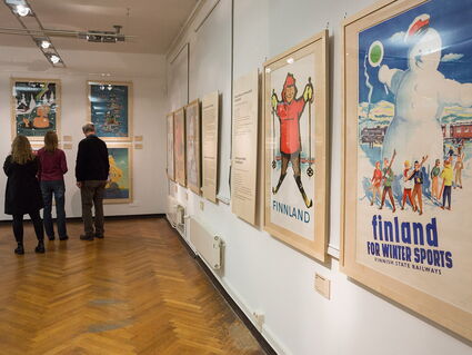 „Auf nach Finnland“ nimmt den Besucher mit auf eine Reise in die Plakatkunst und 150 Jahre finnisches Grafik-Design. Unberührte Natur, urbane Städte wie Helsinki oder eine Winterlandschaft werben auf 80 Plakaten von 1853 bis heute in leuchtenden Farben zur Reise in ein noch unbekanntes Land.