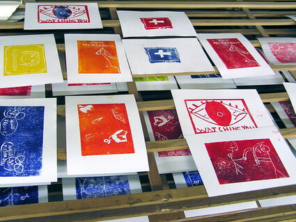 Unter Anleitung der niederländischen Künstlerin Aafke Ytsma werden Motive entwickelt, diese als Hochdruck hergestellt und gedruckt. Dabei kann ein gemeinsames großes Familien-Bild oder auch einzelne Drucke entstehen.