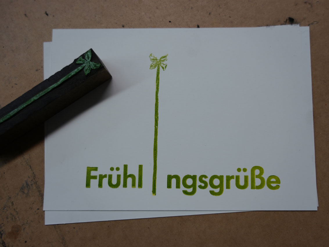 Mit blumigen Klischees und Grußworten in Blei entstehen Postkarten die die Lust auf Frühling wecken. .