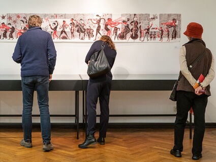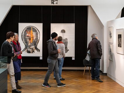 Zum ersten Mal ist die Biennale „100 Sächsische Grafiken“ der Neuen Sächsischen Galerie Chemnitz zu Gast im Museum für Druckkunst Leipzig. Zu sehen sind 100 Arbeiten sächsischer Künstlerinnen und Künstler zum Motto „Kräftemessen“, die eine große Breite künstlerischer Handschriften und Auffassungen zeigen. Teilnahmeberechtigt waren alle Künstlerinnen und Künstler, deren Schaffens- und Wirkungsschwerpunkt in Sachsen liegt. Eingereicht werden konnten maximal vier einzeln oder als Zyklus konzipierte druckgrafische Blätter, die seit 2016 entstanden sind.
