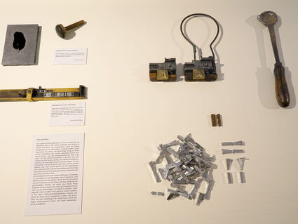 Johannes Gutenberg erfand um 1450 die bewegliche Letter und löste damit eine europäische Medienrevolution aus. Doch in Asien wurde lange vorher mit Lettern aus Ton und später aus Holz und Metall experimentiert. Dennoch dominierte dort bis ins späte 19. Jahrhundert der Holztafeldruck. Die Ausstellung vergleicht die Schriftherstellung auf beiden Kontinenten und verdeutlicht, wie bedeutend Gutenbergs Ingenieursleistung war. Denn sein Handgießinstrument ermöglichte erstmals eine präzise Serienproduktion, die mit den asiatischen Techniken nicht zu erreichen war.