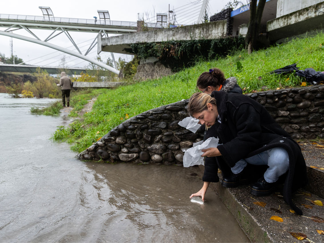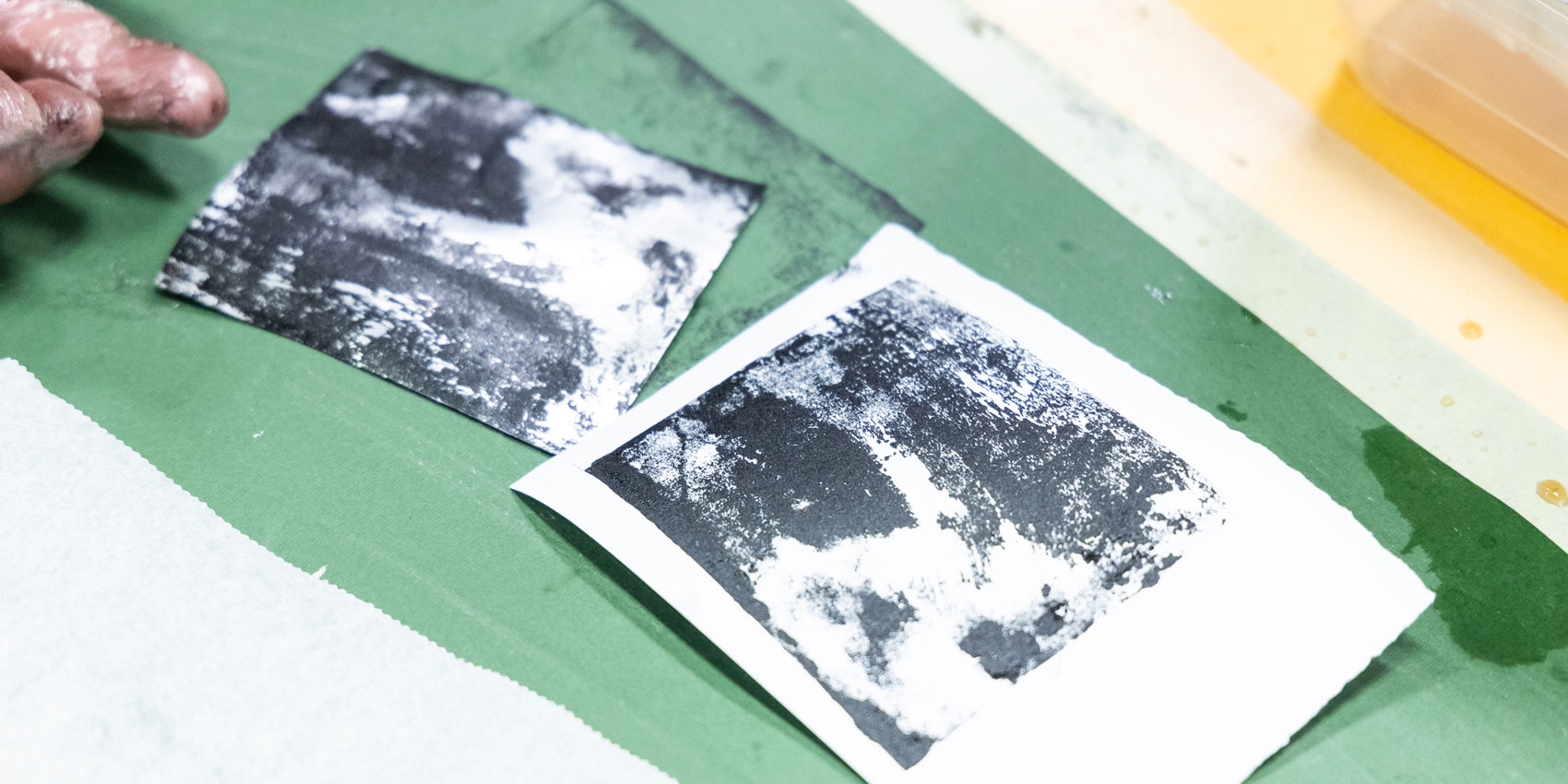 Der Workshop umfasst eine Einführung in die Technik der Wasserlithographie und beschäftigt sich dabei mit Fragen, wie ortsspezifisches Arbeiten mit Lithographie aussehen kann (an Flüssen, Seen, Küsten oder urbanen Wasserorten). Teilnehmende verlassen den Workshop mit eigenen Drucken, einem Verständnis der Wasserlithographie als nachhaltige Praxis mit wiederverwendeten Materialien, und dem Know-how, diese Technik in neue Räume und Begegnungsformate zu übertragen.