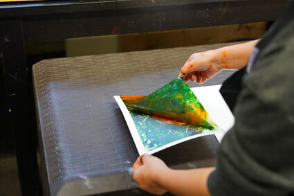 Wir verwandeln unsere Zeichnung in gedruckte Bilder und experimentieren mit Farbwalzen - in diesem Kurs geht es bunt zu.